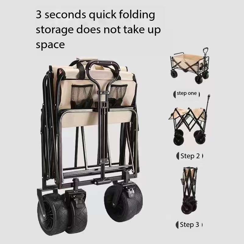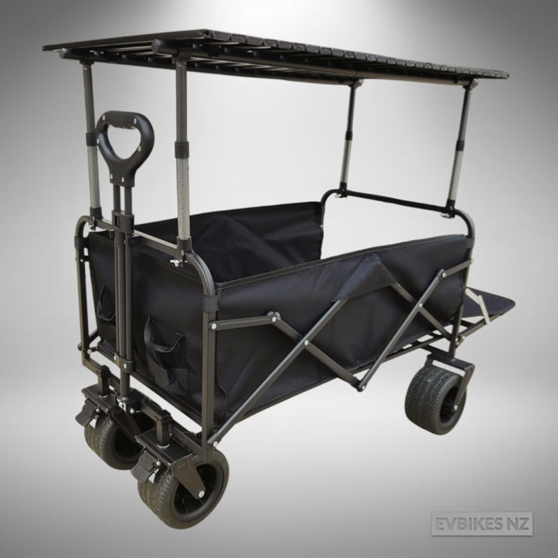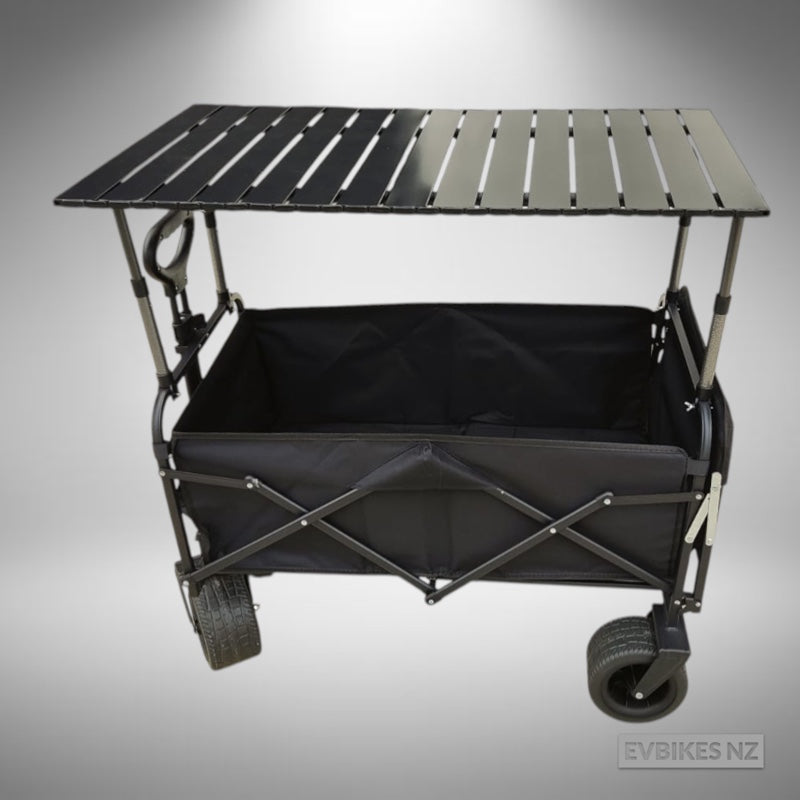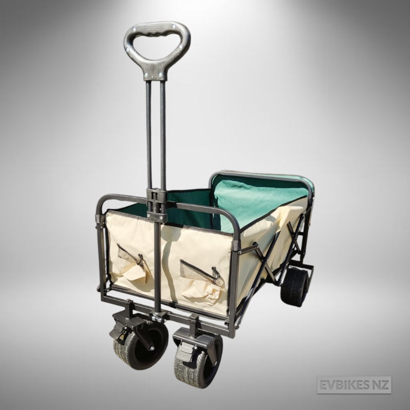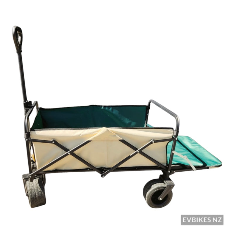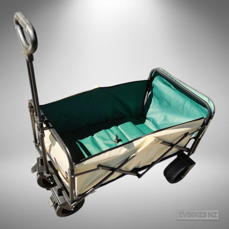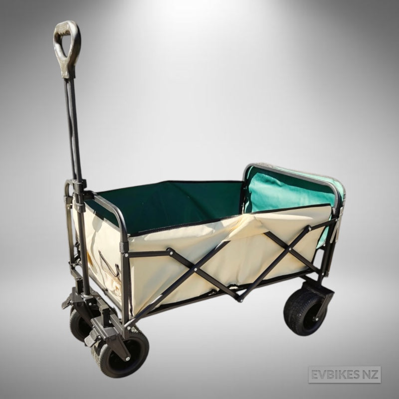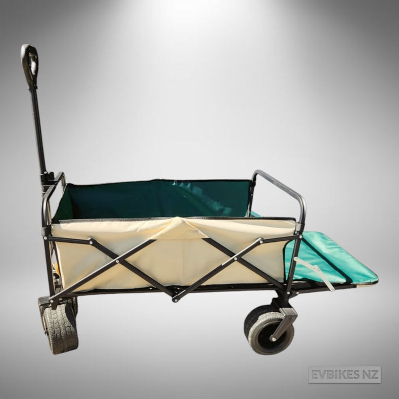 The Trolley can open up, or collapse in just a few seconds. Whether you are doing the gardening, working in the workshop, going camping, or maybe to sports events, going shopping or just going to the beach, this collapsible Trolley is a great idea for carrying your items from place to place.