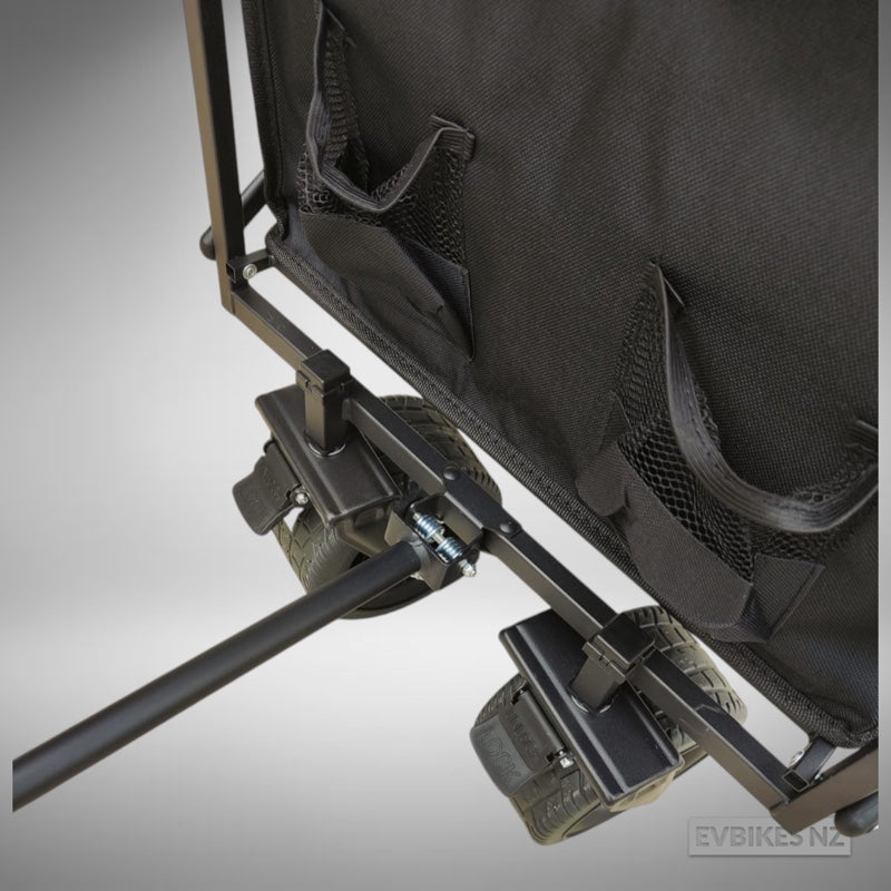 - Rear gate that can be opened and closed, like a hatch-back, allowing you to load-up or unload the contents of the trolley, or allow oversized items to hang out the back while moving them about.