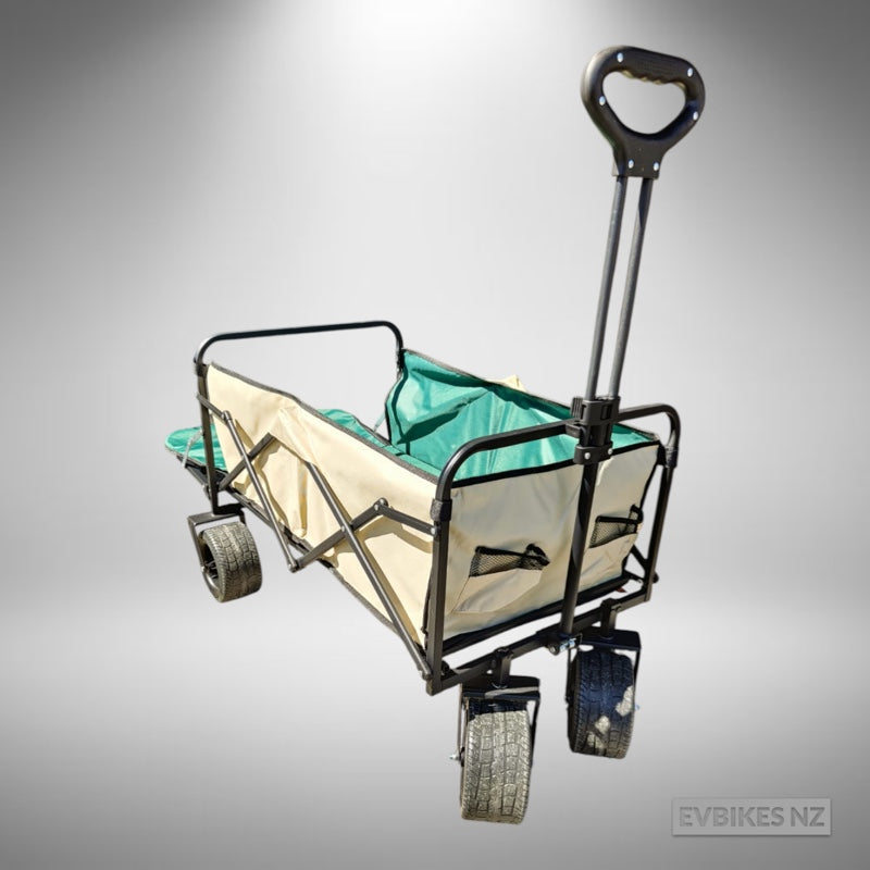 - Works exceptionally well on sand and beaches, but is also right at home in your back garden or at the shopping mall. This trolley is suitable for all terrains so can be taken almost everywhere.