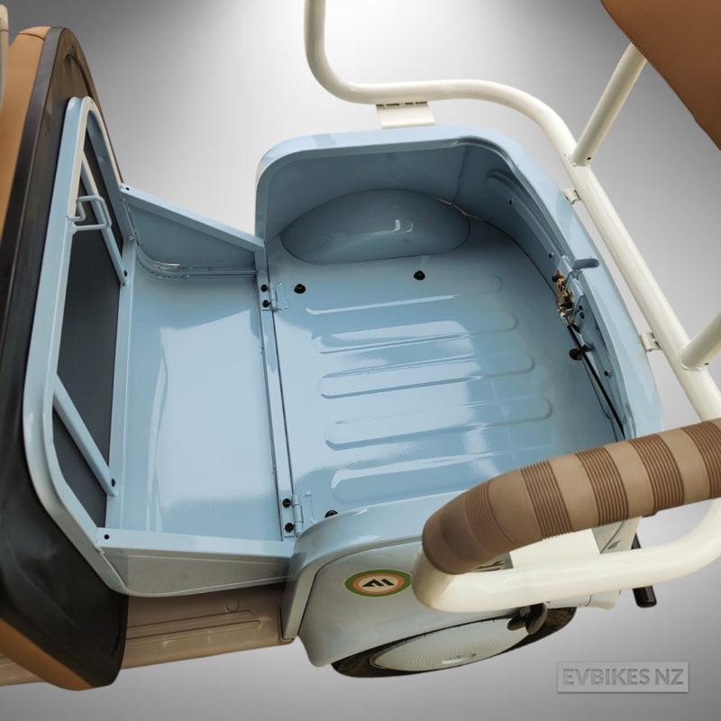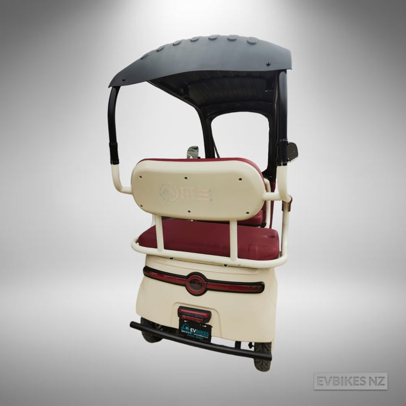 This may be one of the first of its kind in NZ, offering 2 large seats for you and your partner to travel safely, along with a canopy (and side curtains available separately) for protection from the weather.
